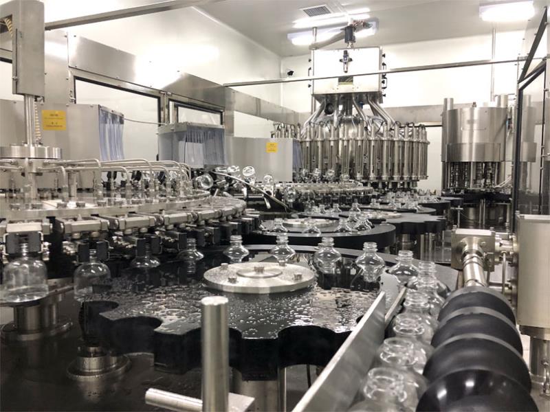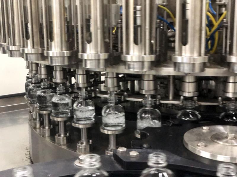 2017年,由廊坊百冠量身定制的20000B/H(330ml)玻璃瓶灌裝生產線落戶涼露酒業,開啟了玻璃瓶酒類灌裝的新篇章。其中白酒定量灌裝一體機為四合一機型,具備沖瓶、瀝干、灌裝、封口功能,為百冠公司高端產品之一。